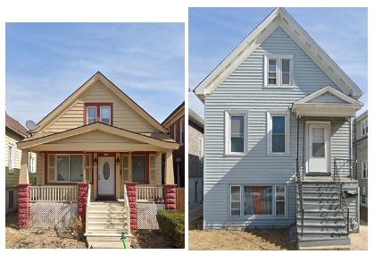 About 4% of the city’s existing houses are cottages, mostly built in the late 19th century. Some of them, like the cottage shown below on the right, were later converted into a duplex, by raising the first floor to accommodate a unit in the basement level. Cottages like these are found throughout neighborhoods near downtown, and they are especially common on the near south side.