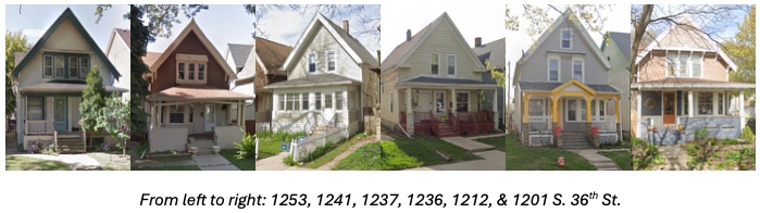 The quality and cost of housing increased in the early 20th century. These photos show six houses on the 1200 block of South 36th Street in Milwaukee’s Silver City neighborhood. They were all built in 1908 or 1909. Their building permits list construction costs of, from left to right: $2,600; $4,000; $2,100; $2,200; $2,100; and $3,000.