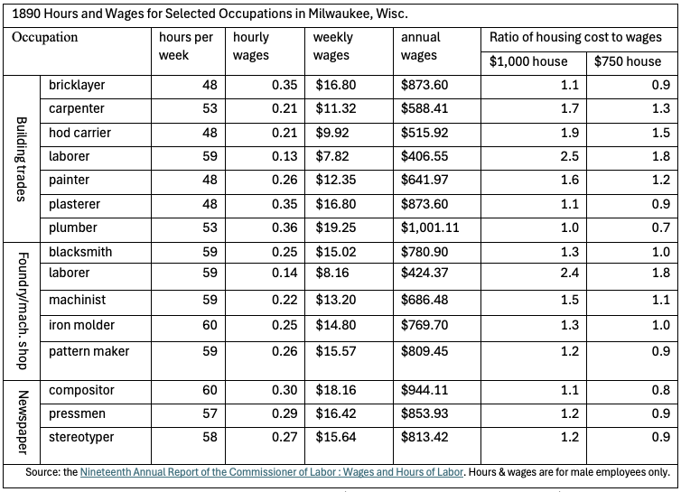 To put that into context, here are the average wages for 15 common jobs in Milwaukee in 1890.
